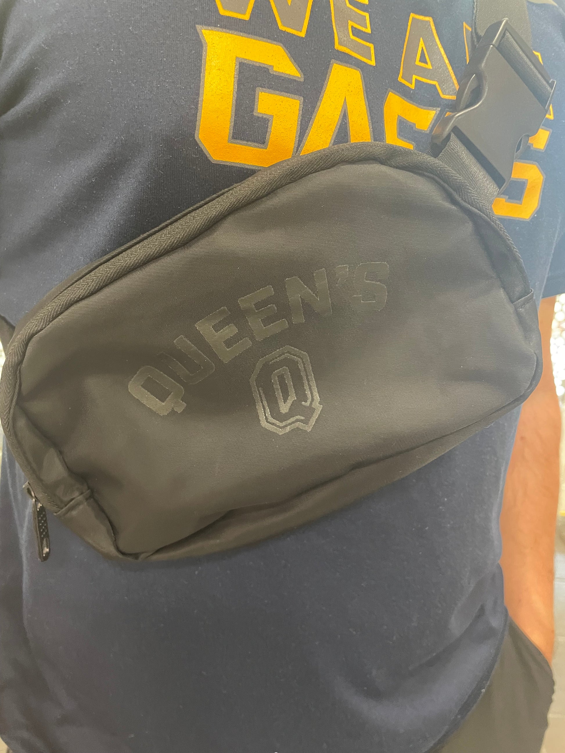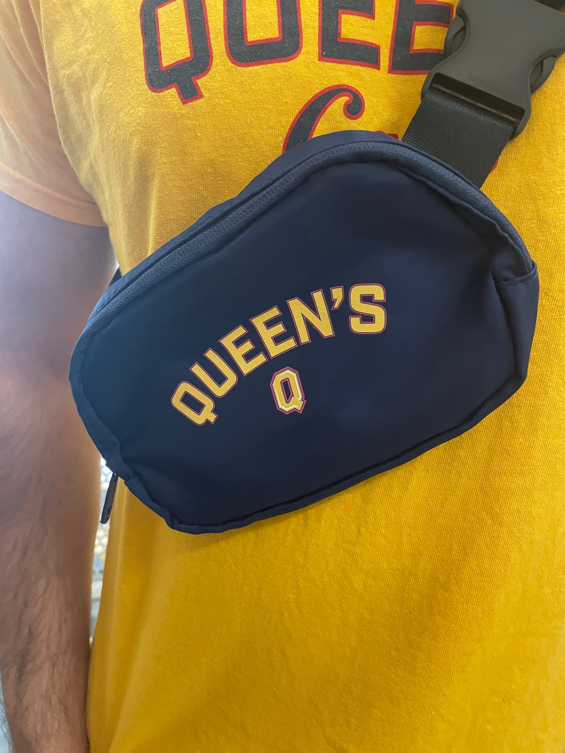 Queen's Navy Belt Bag OR Black on Black Belt Bag! Perfect for everyday essentials! 1.5" High quality smooth Polyester webbing adjustable strap with plastic buckle.