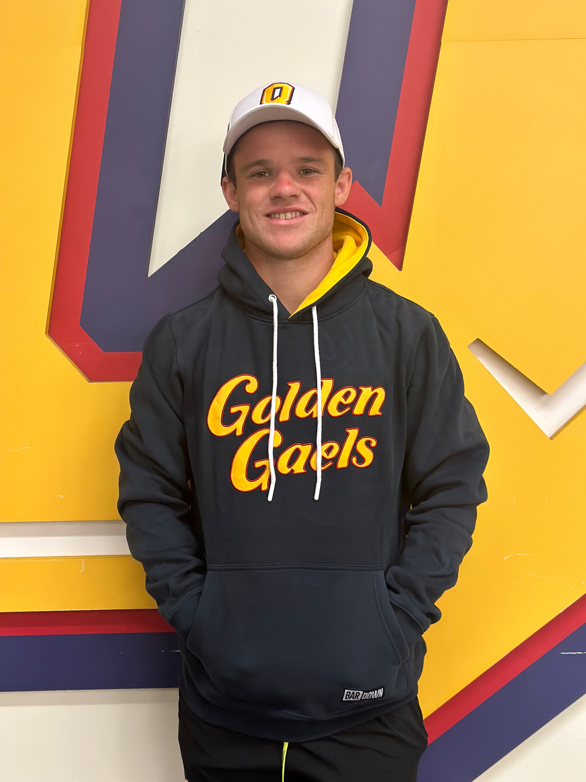 Navy Hoodie with Golden Gaels on front. Gold Hoodie in lay.