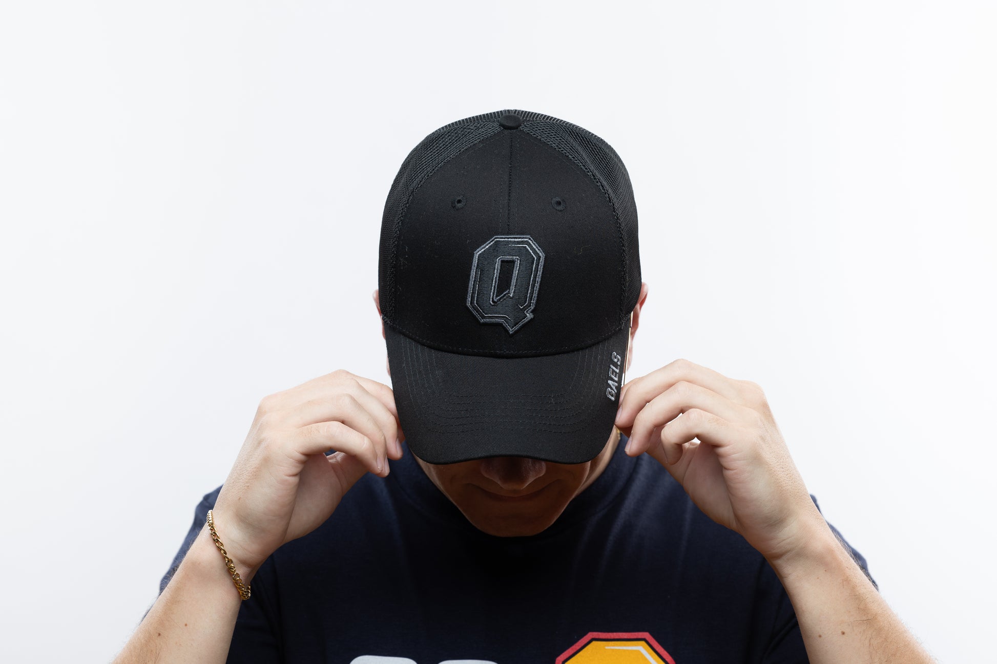 NEW! Adjustable Q Black Hat with Classic Mesh Panels.