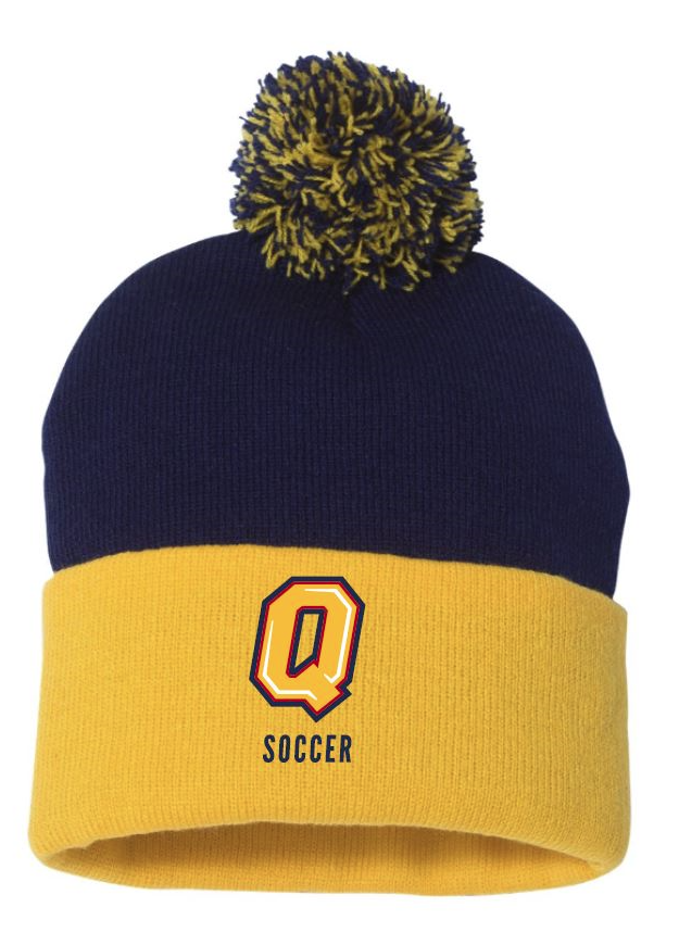 Stay warm this winter with our Knit Gold & Navy Soccer Toque!